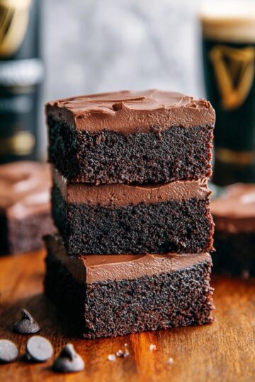 These Guinness Chocolate Brownies are incredibly moist and present a perfect blend of cakey and fudgy textures. Enhanced with rich cocoa and a deep stout flavor, they are topped with a silky Guinness chocolate ganache, making them irresistibly delicious and perfect for any dessert craving.