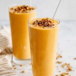 This smoothie is best enjoyed cold and fresh, so I don’t recommend reheating. If you want warmth, try warming some of the pumpkin purée with spices separately and mixing it with the smoothie for a cozy sipper.