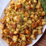 For special occasions, I like to bake this stuffing inside hollowed-out acorn squash or individual ramekins for a rustic, charming presentation. It’s a real crowd-pleaser and makes the meal feel extra festive!