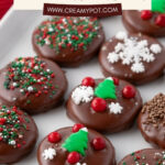 - Add Sprinkles: While the chocolate coating is still wet, gently press Christmas sprinkles on top of each patty for a festive finish.