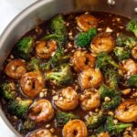 Honey Garlic Shrimp is a quick and flavorful dish featuring succulent shrimp sautéed with broccoli in a sweet and savory honey garlic sauce. Served over perfectly cooked rice and garnished with green onions and honey roasted peanuts, this recipe makes an easy and delicious meal for any day of the week.