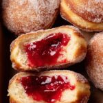 Delicious homemade jelly-filled donuts with a soft, fluffy texture created using the tangzhong method. These classic American-style donuts are fried to golden perfection, then coated in sugar and filled with raspberry jelly for a sweet, satisfying treat perfect for breakfast or brunch.