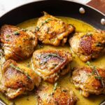 This recipe for Baked Chicken Thighs delivers juicy, flavorful chicken with a crispy skin, enhanced by a savory pan sauce made from white wine, garlic, and fresh herbs. Perfectly seared in a cast iron skillet and finished in the oven, this dish is simple yet elegant, ideal for a comforting dinner served alongside mashed potatoes or your favorite sides.