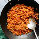 - Pour in the sauce. Add the prepared gochujang sauce and toss to coat the rice and vegetables evenly.