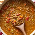 This hearty Lentil Sausage Soup combines savory ground sausage with nutritious brown lentils, vegetables, and a blend of seasonings to create a comforting, flavorful meal perfect for any day. Simmered to perfection with chicken and beef broth as well as diced tomatoes, this soup is rich and satisfying with a slight kick from hot sauce, balanced by the depth of Worcestershire sauce and herbs.