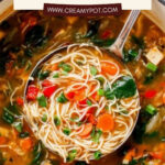 Freezing this soup works best if you leave out the noodles and greens before freezing. Freeze the broth and shredded chicken in a freezer-safe container, then add fresh noodles and veggies when you reheat. This keeps everything tasting bright and prevents sogginess.