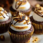 These S’mores Cupcakes with Nutella combine a crunchy graham cracker crust, rich chocolate cupcake, creamy Nutella filling, and fluffy marshmallow frosting for a delightful dessert inspired by the classic campfire treat.