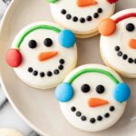 - Instead of using sprinkles and tic tacs for facial features, cookie icing in orange and black colors can be used to draw the snowman’s face.