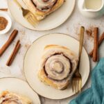 Leftover cinnamon rolls store beautifully in an airtight container at room temperature for up to two days—though they don’t tend to last that long in my house! Wrapping them tightly keeps them soft without drying out.