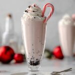 A festive and creamy Peppermint Bark Milkshake blending vanilla ice cream, crushed candy canes, and chocolate chips for a perfect holiday treat.