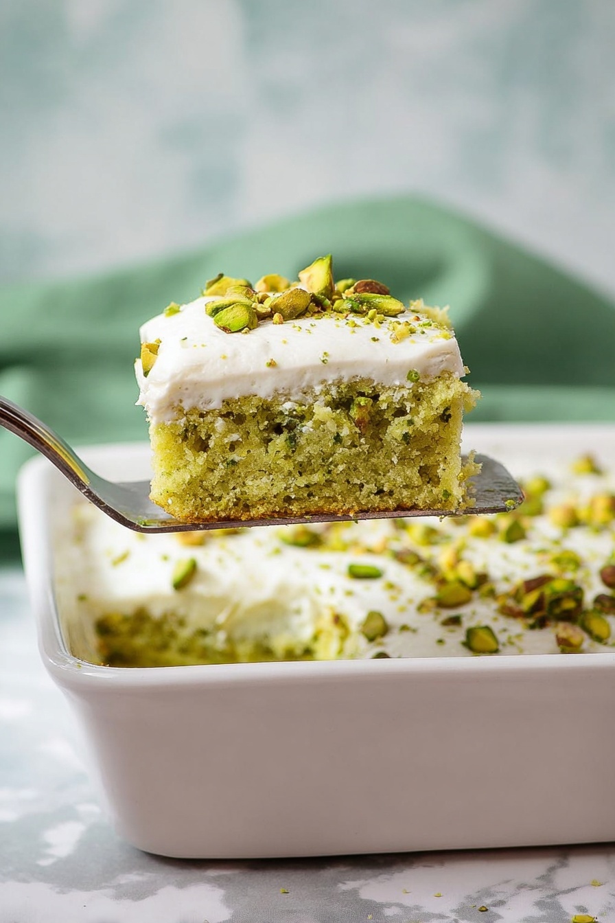 - Nut-Free Variation: If you’re serving someone with nut allergies, skip the chopped pistachio topping entirely. The creamy pistachio pudding frosting still delivers plenty of flavor without the crunch, and it’s just as delightful.