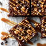 - Poke Holes and Add Caramel: Using the back of a chopstick or small wooden spoon, poke holes all over the brownies. Pour 1/2 cup caramel sauce over top and spread into holes with a spatula. Refrigerate for 1 hour or freeze for 30 minutes to set caramel.