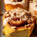Delight in these Pumpkin Cinnamon Rolls featuring a soft pumpkin-infused dough, spiced pumpkin pie filling, crumb topping, and creamy cinnamon cream cheese frosting. Perfect for a cozy fall breakfast or dessert.