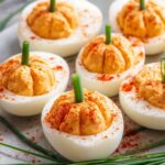 - Festive Presentation: The piped yolk and chive “stems” make these eggs look just like mini pumpkins, adding that seasonal charm to any spread.