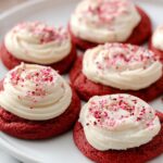 Delicious and festive Red Velvet Cookies with a creamy eggnog cream cheese frosting, perfect for holiday celebrations or any special occasion. These soft, flavorful cookies are enhanced with a hint of peppermint and complemented by a rich, spiced cream cheese frosting.