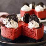 This festive Christmas Red Velvet Oreo Cheesecake features a rich, creamy cream cheese filling with classic red velvet flavors and a crunchy Oreo cookie crust. Perfect for holiday celebrations, it’s baked in a water bath for a smooth and silky texture, then topped with whipped cream for an indulgent finish.