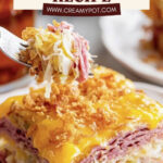 Once out of the oven, let your casserole rest covered for about 5 minutes. This little pause helps the layers settle, making it easier to slice and serve. Then, cut into squares and enjoy this comforting, crowd-pleasing Reuben feast!