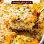 I usually keep things simple with this casserole. A sprinkle of fresh parsley brightens it up and looks inviting. Sometimes, I add a little chopped chive or scallion on top for a subtle oniony fresh hit that cuts through the richness.