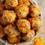For special occasions, I’ve arranged the sausage balls on skewers or surrounded a cheese wheel platter with them for a beautiful appetizer display. They’re also charming served in mini cupcake liners when you want to keep things neat and cute.