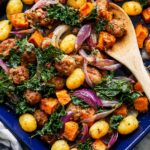 A delicious and easy sheet pan recipe featuring roasted butternut squash, turkey sausage, and potato gnocchi tossed with kale and drizzled with a flavorful miso-cider sauce. Perfect for a cozy weeknight dinner with minimal cleanup.