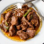- Slow cooker method: Transfer the seared beef to a 6-quart slow cooker with all remaining ingredients, including leftover spices. Stir to combine, cover, and cook on HIGH for 4 ½ hours or on LOW for 8 hours or until beef is easily shredded with forks.