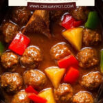 A delicious and easy recipe for Slow Cooker Sweet and Sour Meatballs featuring tender frozen meatballs simmered in a tangy pineapple and bell pepper sauce, perfect for a comforting meal served over white rice.