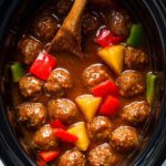 A delicious and easy recipe for Slow Cooker Sweet and Sour Meatballs featuring tender frozen meatballs simmered in a tangy pineapple and bell pepper sauce, perfect for a comforting meal served over white rice.