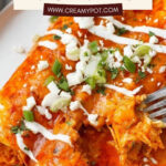 Lower the heat to medium-low and stir in the cream cheese until it’s fully melted and the sauce looks silky smooth. This is the magic that brings creaminess to every bite. Next, stir in your shredded chicken evenly so each enchilada gets that spicy, creamy goodness.