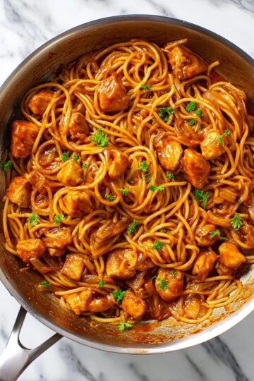 Cowboy Butter Chicken Pasta is a buttery, spicy, and flavorful weeknight dinner ready in under 30 minutes. This dish combines tender chicken thighs, a savory herb-infused cowboy butter sauce, creamy Parmesan cheese, and perfectly cooked linguine for a comforting and satisfying meal.