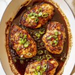 Firecracker Chicken is a spicy and flavorful baked chicken dish featuring a tangy, sweet, and spicy sauce made with garlic, ginger, soy sauce, brown sugar, red pepper flakes, and hot sauce. Perfectly baked to juicy tenderness, this recipe is easy to prepare and ideal for a weeknight dinner. Garnished with fresh green onions and parsley, it pairs wonderfully with rice, slaw, or roasted vegetables.