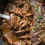 - Add Herbs and Cook: Place 3 sprigs fresh thyme into the slow cooker. Cover and cook on LOW for 9 hours 15 minutes (or up to 10 hours) until the roast is fork-tender. Alternatively, cook on HIGH for 6 to 8 hours.