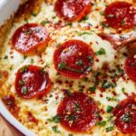 This Pizza Dip is a warm, cheesy appetizer that combines cream cheese, sour cream, marinara sauce, and a blend of Italian herbs topped with mozzarella, parmesan, and pepperoni. Baked until bubbly and golden, it’s perfect for dipping with crusty bread, chips, or veggies and makes a delicious crowd-pleaser for any occasion.