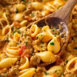 This One Pot Taco Pasta is a creamy, cheesy, and flavorful dish combining taco-seasoned ground beef, tender pasta shells, and a blend of cheeses in a rich tomato and broth sauce. Perfect for a quick and hearty meal that requires minimal cleanup.