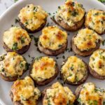 - Bake Mushrooms: Arrange the stuffed mushrooms on the prepared baking sheet and bake for 20 minutes until the tops are golden and mushrooms are tender.
