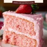 To keep your strawberry cake tasting its best, cover it tightly and store it in the refrigerator for up to 5 days. For the best texture and flavor, bring the cake out about 2 hours before serving — this lets the frosting soften just right. Leftover cake never lasts long in my house!