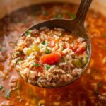 Hearty and comforting Stuffed Pepper Soup that combines the flavors of classic stuffed peppers into a warming, easy-to-make soup. Packed with ground beef, bell peppers, tomatoes, and seasoned with Italian herbs, this soup is perfect for a satisfying meal any day of the week.
