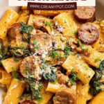 A creamy and flavorful Sun-Dried Tomato Pasta featuring sweet Italian sausage, spinach, and a rich sauce made with sun-dried tomatoes, cream cheese, and Parmesan. This comforting pasta dish combines tangy, savory, and slightly spicy elements for a satisfying meal perfect for dinner.