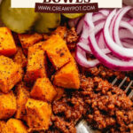- Flavor Harmony: The sweet, earthy notes of roasted sweet potatoes complement the zesty, saucy sloppy joe meat really well.