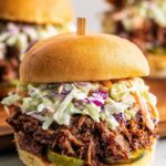 - Assemble the sandwiches: Layer the hot brisket evenly over the bottom halves of the buns. Drizzle barbecue sauce over the meat, then add a generous scoop of coleslaw on top.