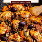 Once out of the oven, scatter the pitted Kalamata olives over the top and garnish with a tablespoon of freshly chopped parsley. Serve this comforting chicken cacciatore piping hot over your favorite noodles, rice, or creamy polenta. Each bite will be a cozy taste of Italy!