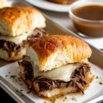 Slow Cooker French Dip Sandwiches are a comforting and flavorful meal featuring tender, shredded beef chuck roast cooked low and slow with onion soup mix and beef broth. Served on crusty rolls with melted Swiss or provolone cheese, and accompanied by rich au jus for dipping, these sandwiches are perfect for an easy and delicious dinner.
