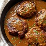 - Return Steaks to Gravy: Add steaks back to the skillet with any accumulated juices. Spoon gravy over the steaks. Partially cover and cook gently with occasional bubbling for 5 minutes. Flip steaks carefully and spoon more gravy on top. Cook an additional 3 minutes or until desired doneness is reached, checking by feel or thermometer.