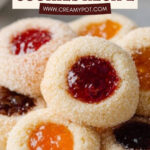 Don’t overfill the thumbprint indentation—about ¾ teaspoon is ideal. Using a thicker jam also helps. Baking at the right temperature (350°F) ensures the cookies cook evenly without the jam bubbling over.