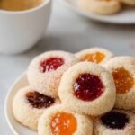 Delicious homemade thumbprint cookies filled with your choice of raspberry, strawberry, or blueberry jam. These buttery cookies have a soft texture with a sweet, fruity center that makes them perfect for any occasion.