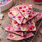 This Valentine’s Day Chocolate Bark is a festive and delightful treat combining rich dark chocolate with creamy white chocolate and vibrant pink candy melts. Decorated with colorful Valentine’s candies and sprinkles, it’s perfect for gifting or celebrating the holiday with loved ones.