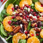 A festive and vibrant Christmas Salad featuring baby spinach, toasted pecans, dried cranberries, mandarin oranges, goat cheese, and pomegranate arils, tossed in a tangy honey-lime Dijon mustard dressing. Perfect for holiday gatherings as a refreshing and colorful side dish.