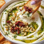 A creamy and flavorful Whipped Ricotta topped with aromatic basil oil, toasted pine nuts, and sun-dried tomatoes. This easy-to-make appetizer is perfect for serving with crusty bread, pita chips, or crackers as a delicious and elegant snack or starter.