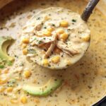 A creamy, flavorful White Chicken Chili made with tender shredded chicken, white beans, green chiles, and a blend of spices. This hearty chili is thickened with cream cheese and finished with fresh lime and cilantro. Perfect for a comforting dinner, served with customizable toppings.